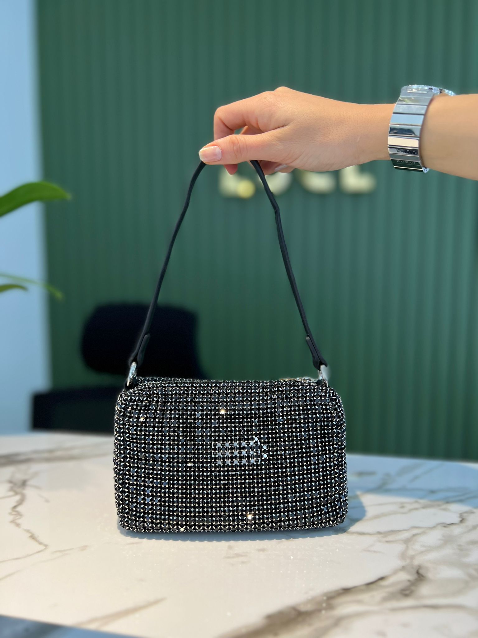 -İthal özel tasarım -Taşlı mini el çantası -Ağzı fermuar kapamalı